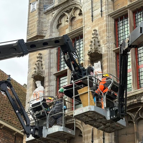 Deze week worden de nieuwe beelden van de Vrouwen en Heren van Veere geplaatst in de nissen van het stadhuis in Veere. De nieuwe beelden zijn gebaseerd op de originele 16e-eeuwse beelden.
