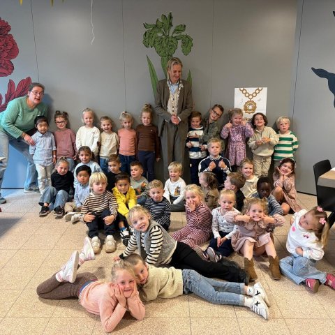 Burgemeester Frederiek Schouwenaar ontbijt samen met peuters en kleuters uit Domburg