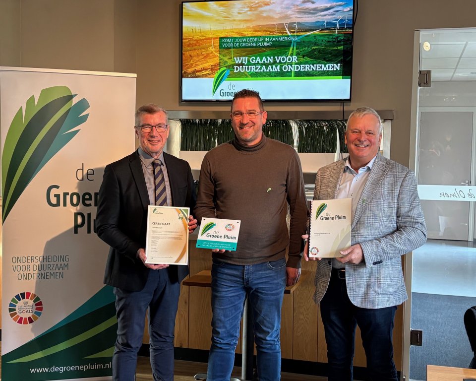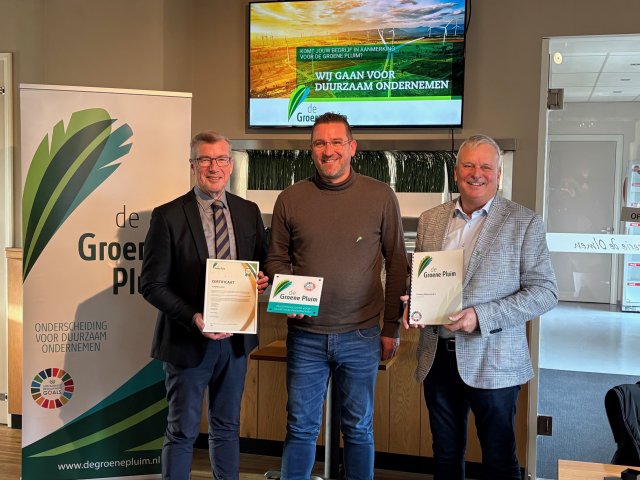 Op de foto: Wethouder John de Jonge, Jos Westerbeke en Peter van den Eijnden (voorzitter De Groene Pluim).