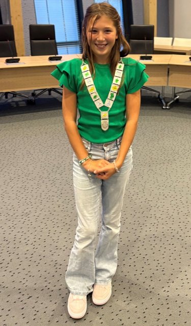 Aan het eind van de verkiezingsmiddag kregen alle deelnemers een medaille en een boekenbon als dank voor hun inzet en presentatie. De winnaar mocht de kinderketen alvast omdoen, die speciaal voor het kinderburgemeesterschap is ontworpen.