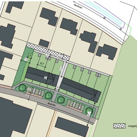 Aan de straat Baentje in de wijk Nimmerdor I worden in 2026 negen sociale huurwoningen gerealiseerd.