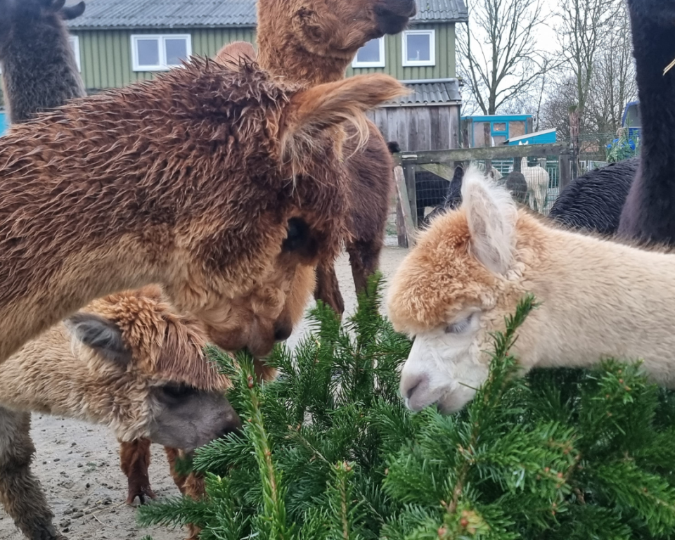 Kerstbomen zijn een gezonde snack voor de alpaca’s. In de naalden zit veel vitamine A (goed voor het afweersysteem en een gave huid) en stoffen die op een natuurlijke manier voor ontworming zorgen. Naast hun dagelijkse voeding, zoals hooi en alpacabrokken, consumeerden de alpaca’s afgelopen jaar 1350 Veerse kerstbomen.